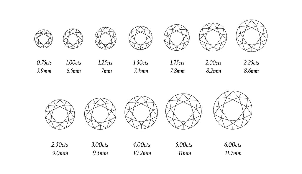 O peso em quilates de um diamante está diretamente relacionado ao seu tamanho; no entanto, o peso em quilates de um diamante por si só não define a beleza de uma pedra, e cada um dos 4 Cs também deve ser levado em consideração. Quanto maior o peso em quilates, maior o diamante; no entanto, também é essencial considerar o corte do diamante, pois isso também pode afetar sua aparência geral.